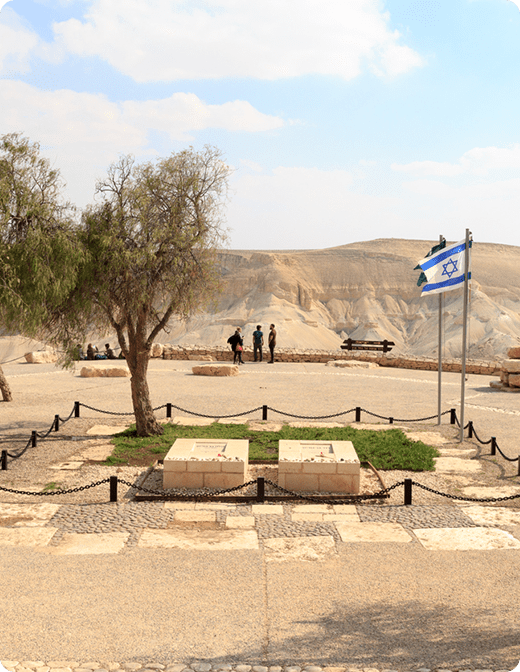 ביקור במתחם הקבר בן גוריון, יש לכתוב ב-WAZE רחבת הקבר דוד ופולה בן גוריון